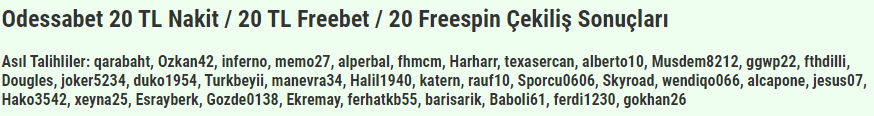 20 TL Freebet - 20 TL Nakit - 20 Freespin | ODESSABET