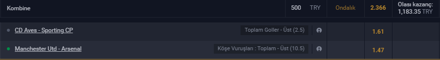 Shaq' Alıntı: Korner bahsi 9.5 Üst olarak baz alınacak. Bol şans. Ekli dosyayı görüntüle 14577 Genişletmek için tıkla ... Bol şanslar hepimize inşallah 2. Yarı da sporting 0 3 kazanmış olur korner 7 oldu